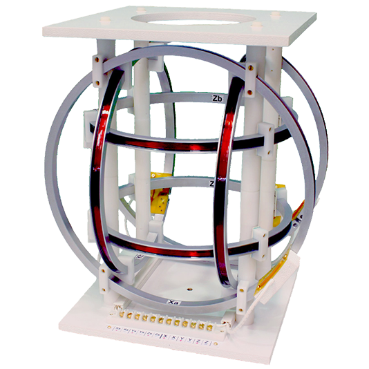一套桌面化、重量轻的亥姆霍兹线圈,用于实验室及通用用途。 这些线圈采用铝制分体线圈成型器构建,可通过电气连接以产生低强度磁场。