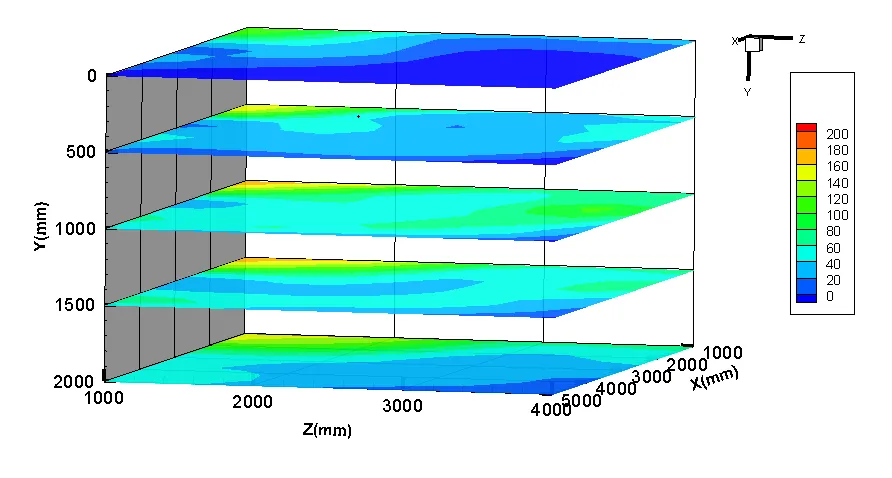 更为可喜的是,该项目的屏蔽效果又上新台阶。背景场调查显示屏蔽前该实验室内部平均磁场超过52000nT,项目完成后,经严格检测,除门口1*1.5m区域外,内部静磁场平均值仅约65nT,远超合同要求的200nT,也大大优于以往类似屏蔽室内剩余磁场。