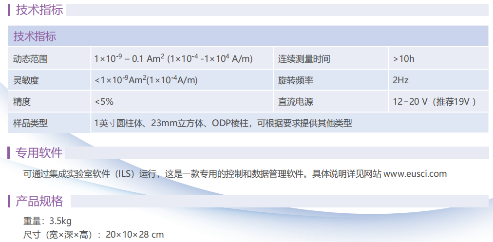 由于该仪器以低转速运⾏,它将对样本的机械应⼒降至最低,并能够对包括软沉积物在内的易碎材料进行安全测量。该磁⼒仪独特之处在于,可对测量样本磁均匀性进行评估。