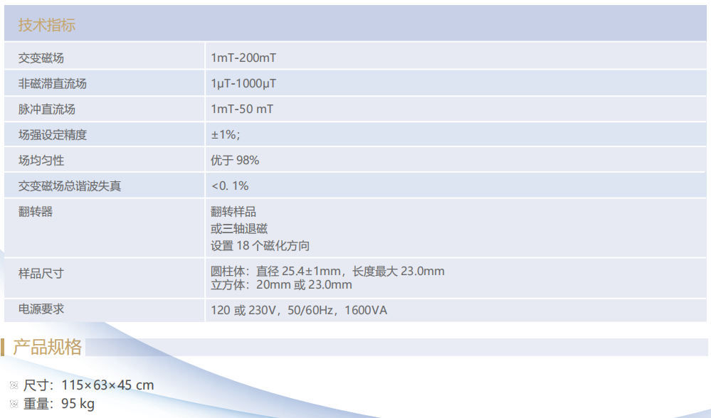- 退磁场与磁化场范围宽、可精确设置